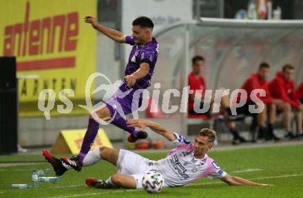Fussball. 2. Liga. SK Austria Klagenfurt gegen FC Juniors Oberoesterreich. Darijo Pecirep, (Klagenfurt), Erwin Softic (FC Juniors Oberoesterreich). Klagenfurt, am 4.7.2020.