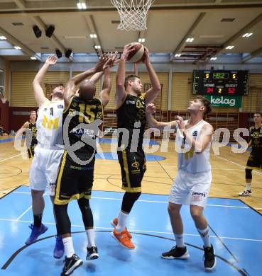 Basketball Austria Cup. Woerthersee Piraten gegen Fuerstenfeld Panthers. Andreas Nuck, Alexander Pirker (Piraten), David A. O. Akibo, Marko Vranjkovic (Fuerstenfeld). Klagenfurt, am 20.9.2020.