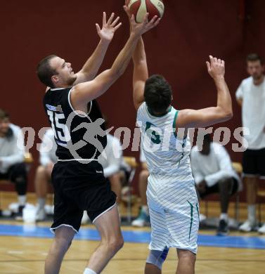 Basketball Zweite Liga 2020/2021. Grunddurchgang 2. Runde. KOS Celovec gegen RAIDERS Tirol. Daniel Gspandl (KOS Celovec), Oliver Vujakovic (Tirol). Klagenfurt, am 3.10.2020.