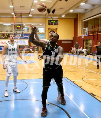 Basketball Zweite Liga 2020/2021. Grunddurchgang 2. Runde. KOS Celovec gegen RAIDERS Tirol.  Marin Sliskovic (KOS Celovec), John Franklyn Gardiner (Tirol). Klagenfurt, am 3.10.2020.