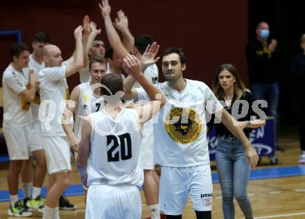 Basketball Zweite Liga 2020/2021. Grunddurchgang 3. Runde. Woerthersee Piraten gegen RAIDERS Tirol. Jubel (Piraten). Klagenfurt, am 10.10.2020.