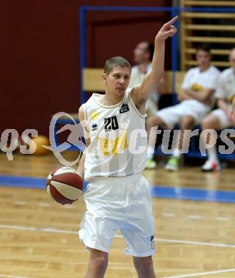 Basketball Zweite Liga 2020/2021. Grunddurchgang 3. Runde. Woerthersee Piraten gegen RAIDERS Tirol. Tevz Ruzic (Piraten). Klagenfurt, am 10.10.2020.