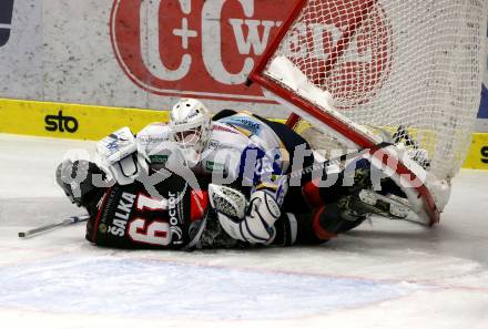 EBEL. Eishockey Bundesliga. VSV gegen Bratislava Capitals. Michael Raffl VSV Ladislav Romancik Bratislava. Villach am 8.12.2020.Foto: Kuesswww.qspictures.net