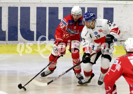 EBEL. Eishockey Bundesliga. KAC gegen HC TIWAG Innsbruck. Rok Ticar, (KAC), Maxwell Nicholas Gerlach (Innsbruck). Klagenfurt, am 20.12.2020.