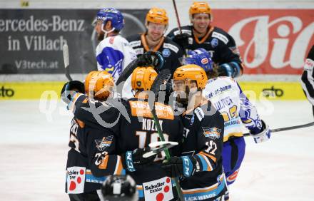 EBEL. Eishockey Bundesliga. VSV gegen Black Wings 1992 Linz. Torjubel Alexander Lahoda JuhaPekka Hytonen Linz. Villach am 30.12.2020.Foto: Kuesswww.qspictures.net