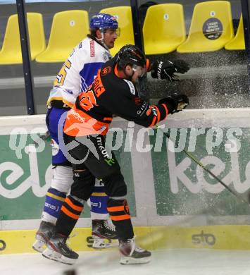 EBEL. Eishockey Bundesliga. VSV gegen Moser Medical Graz 99ers. Raphael Wolf, (VSV), Adis Alagic (Graz). Villach, am 23.2.2021.