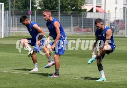 Fussball. Bundesliga. Training. SK Austria Klagenfurt. Darijo Pecirep, Benjamin Hadzic, Philipp Huetter. Klagenfurt, am 21.6.2021.