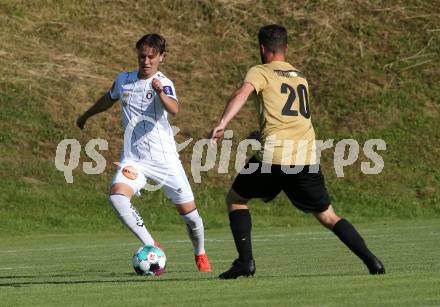 Fussball. Freundschaftsspiel. Koettmannsdorf gegen Austria Klagenfurt. Patrick Rene Striednig (Koettmannsdorf), Alex Timossi Andersson (Klagenfurt). Klagenfurt, am 28.6.2021.
