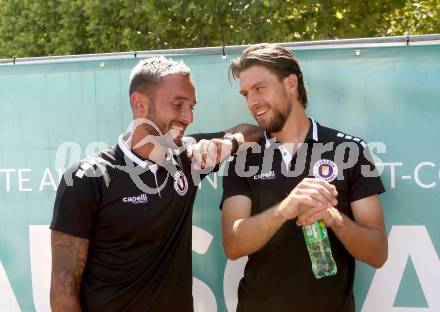 Fussball. Bundesliga. Austria Klagenfurt. Aufstiegsfeier. Mannschaftspraesentation. Markus Pink, Phillip Menzel. Klagenfurt, am 10.7.2021.