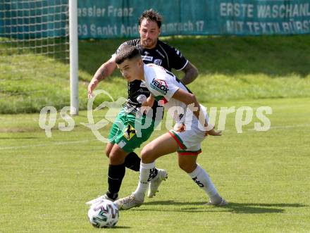 Fussball Regionalliga. WAC Amateure gegen FC Gleisdorf 09. Adis Jasic (WAC), Thomas Wotolen (Gleisdorf). St. Andrae, am 14.8.2021.