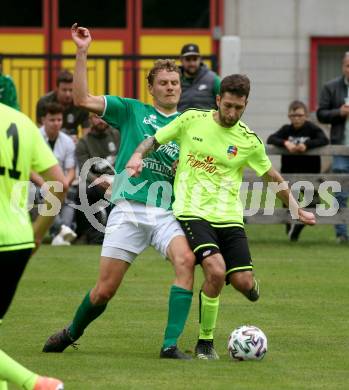 Fussball. 2. Klasse A. Ainet gegen Obermillstatt. Dominik Rainer (Ainet), Michael Obweger (Obermillstatt). Ainet, 3.10.2021.