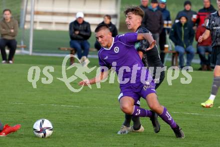 Fussball Testspiel. SK Austria Klagenfurt gegen Union Berlin. Luca Grillemaier (Klagenfurt), Dahlke Luca (Berlin). Globasnitz, am 11.10.2021.
