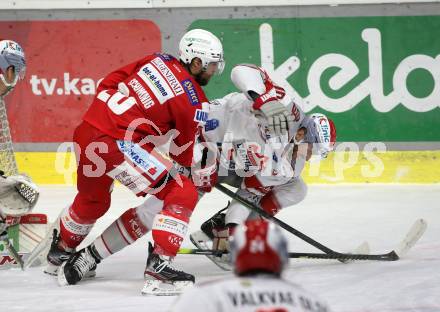 EBEL. Eishockey Bundesliga. KAC gegen iClinic Bratislava Capitals. Martin Schumnig, (KAC), Boris Sadecky (Bratislava). Klagenfurt, am 15.10.2021.