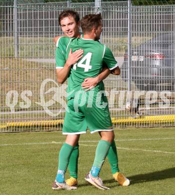 Fussball. Unterliga West. Landskron gegen Sachsenburg. Torjubel Daniel Arneitz, Phillip Gatti (Landskron). Landskron, 16.10.2016.