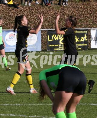 Fussball. 2. Frauenbundesliga. Carinthians LIWOdruck Hornets gegen FC Altera Porta. Torjubel Elisa Ciccarelli, Marie Sophie Klocker (Carinthians), (Altera Porta). Feistritz/Drau, 31.10.2021.
