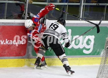 EBEL. Eishockey Bundesliga. KAC gegen Dornbirn Bulldogs. Hochegger Fabian (KAC), Cuma Tyler (Dornbirn). Klagenfurt, am 5.11.2021.