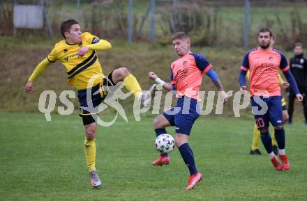 Fussball. 1. Klasse D. DSG Ferlach gegen Tainach. Thomas Schmautz (Ferlach), Michael Lamp (Tainach). Ferlach, 6.11.2021.