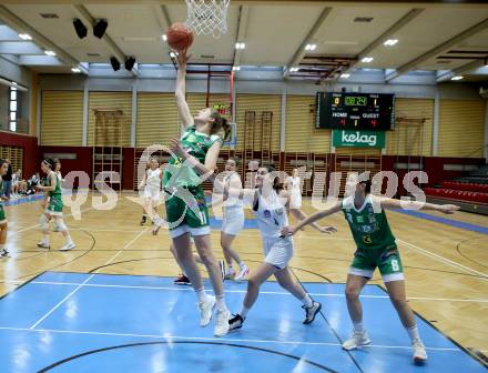 Basketball Damen Superliga 2021/2022. Grunddurchgang 5. Runde. KOS Celovec Damen gegen UBI Graz. Sasa Tomazic (KOS), Eva Fellner, Camilla Neumann (Graz). Klagenfurt, am 20.11.2021.