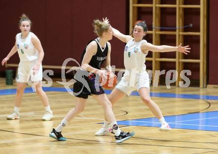 Basketball. Damen Basketball Austria Cup 2021/2022. KOS Celovec Damen gegen Vienna United Post SV. Alina Seher (KOS), Michelle Slunecko (Vienna). Klagenfurt, am 27.11.2021.