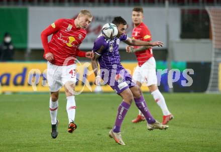 Fussball. Bundesliga. SK Austria Klagenfurt gegen FC Red Bull Salzburg. Markus Pink, (Klagenfurt), Rasmus Nissen Kristensen (Salzburg ). Klagenfurt, am 27.11.2021.