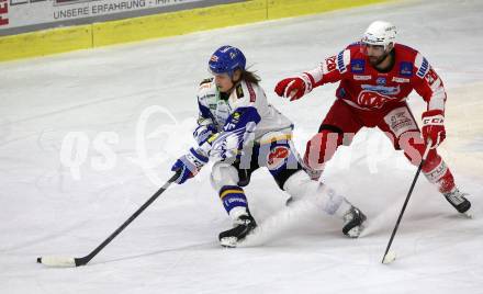 EBEL. Eishockey Bundesliga. KAC gegen VSV. Martin Schumnig, (KAC), Anton Karlsson (VSV). Klagenfurt, am 25.1.2022.