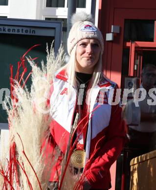 Schi Alpin. Empfang Olympiasiegerin Katharina Truppe. Katharina Truppe. Latschach, Finkenstein, am 23.2.2022.