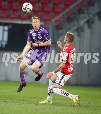 Fussball Bundesliga. SK Austria Klagenfurt gegen SV Guntamatic Ried. Christopher Cvetko, (Klagenfurt), Nikolas Stosic (Ried). Klagenfurt, am 27.2.2022.