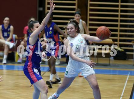 Basketball Damen Superliga 2021/2022. Grunddurchgang 11. Runde. KOS Celovec Damen gegen UBSC-DBBC Graz. Elma Voljevica (KOS), Maria Repelnig (Graz). Klagenfurt, am 19.3.2022.