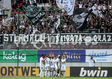 Fussball Bundesliga. SK Austria Klagenfurt gegen SK Puntigamer Sturm Graz. Torjubel, FAns (Graz). Klagenfurt, am 11.9..2022.
