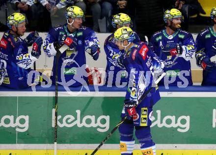 EBEL. Eishockey Bundesliga. EC VSV gegen HK SZ Olimpija. Torjubel Nicolas Rivett-Mattinen (VSV). Villach, am 6.11.2022.