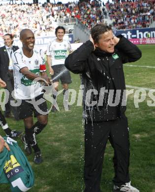 Fussball T-Mobile Bundesliga. SK Austria Kaernten gegen Ried. Sektdusche fuer Frenkie Schinkels von Chiquinho. Klagenfurt, 20.4.2008.