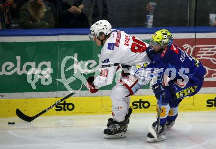 EBEL. Eishockey Bundesliga. EC VSV gegen EC KAC. Alexander Rauchenwald, (VSV), Nikolaus Kraus (KAC). Villach, am 2.12.2022.