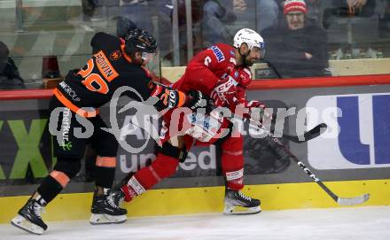 EBEL. Eishockey Bundesliga. EC KAC gegen Moser Medical Graz99ers. Lucas Lessio, (KAC), Michael Boivin (Graz). Klagenfurt, am 23.12.2022.