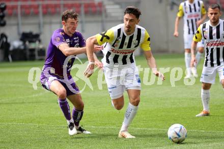 Fussball Bundesliga. SK Austria Klagenfurt gegen LASK. Andrew Irving, (Klagenfurt), Robert Zulj (LASK). Klagenfurt, am 7.5.2023.