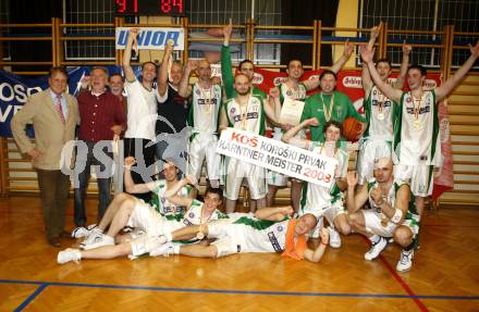 Basketball Kaerntner Liga. Posojilnica KOS gegen Woerthersee Piraten. Jubel KOS. Mannschaftsfoto. Klagenfurt, 8.5.2008.