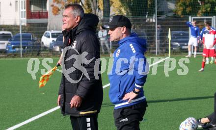 Fussball Kaerntner Liga. SK Austria Klagenfurt gegen SAK. Trainer Robert Micheu, Trainer Kai Schoppitsch (Austria Klagenfurt), Klagenfurt, am 28.10.2023.