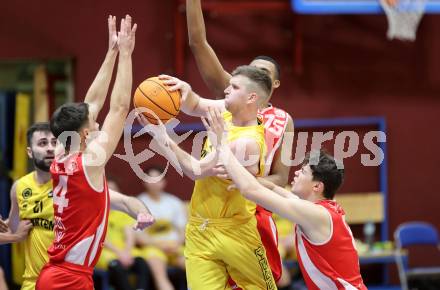 Basketball 2. Liga 2023⁄2024. Grunddurchgang 15. Runde. Woerthersee Piraten gegen Upper Austrian Ballers. Andreas Nuck Piraten Petar Nemcec Upper Austrian Ballers. Klagenfurt am 28.1.2024Foto: Kuess