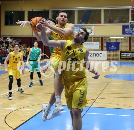 Basketball 2. Liga 2023/2024. Grunddurchgang 19. Runde. Woerthersee Piraten gegen KOS. Andreas Nuck, Jan-Arne Apschner (Piraten), Klagenfurt, am 24.2.2024.