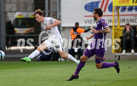 Fussball Bundesliga. SK Austria Klagenfurt gegen SK Puntigamer Sturm Graz. Kosmas Gkezos, (Klagenfurt), William Boving Vick (Graz). Klagenfurt, am 17.3.2024.