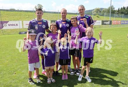 Fussball Bundesliga. Tag der offenen Tuer. SK Austria Klagenfurt. David Toshevski, Florian Jaritz, Niklas Szerencsi . Klagenfurt, am 6.7.2024.