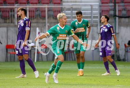 Fussball Bundesliga. SK Austria Klagenfurt gegen SK Rapid. Torjubel Moritz Oswald (Rapid). Klagenfurt, am 11.8.2024.