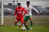 Fussball Kaerntner Liga. KAC gegen Donau. Mihret Topcagic (KAC), Androw Ibrahim (Donau). Klagenfurt, am 9.11.2024.