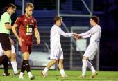 Fussball Kärntner Liga. SAK gegen Spittal. Zan Kumer (SAK), Santino Luca Nicastro Mirabella (Spittal). Klagenfurt, am 3.10.2025.