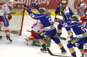 Eishockey ICE Bundesliga. Winn2day ICE Hockey League. VSV gegen KAC. Torjubel Nick Hutchison Thomas Vallant Guus Van Nes Arturs Kulda VSV. Villach am 14.11.2025.Foto: Kuesswww.qspictures.net
