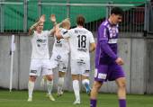 Fussball 2. Liga. SK Austria Klagenfurt gegen Amstetten. Torjubel David Peham Amstetten. Klagenfurt 22.11..2025.Foto: Kuesswww.qspictures.net