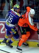 Eishockey ICE Bundesliga. Winn2day ICE Hockey League. VSV gegen Graz99ers Brett Ritchie (VSV), Nicolas Wieser (Graz). Villach, am 30.12.2025.