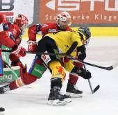 Eishockey ICE Bundesliga. Winn2day ICE Hockey League. KAC gegen HC Falkenstein Pustertal. Joshua Teves KAC Mikael Frycklund Pustertal. Klagenfurt am 5.1.2026Foto: Kuesswww.qspictures.net