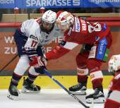 Eishockey ICE Bundesliga. Winn2day ICE Hockey League. KAC gegen Hydro Fehervar AV 19. Finn Van Ee KAC Roland Kiss Fehervar. Klagenfurt am 16.1.2026Foto: Kuesswww.qspictures.net