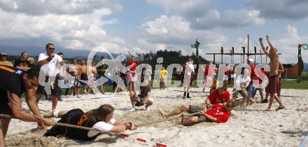 EBEL. Eishockey Bundesliga. Highland Games fuer Eishockey Fanclubs. Seilziehen. Mike Craig Kirk Furey Dieter Kalt Herbert Ratz Sean Brown VSV Fan Club. Althofen am 22.8.2009.Foto: Kuess