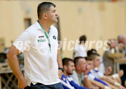 Handball Bundesliga. SC Ferlach gegen HSG Holding Graz. Trainer Gregor Cvijic (Ferlach). Ferlach, 6.9.2014.